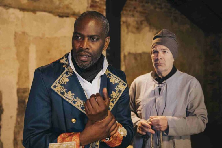 Artistikrezo : » L’excellent comédien Tony Harrisson s’est saisi de cette pièce efficace pour endosser le fabuleux costume de ce héros, dans une scénographie carcérale sculptée par de belles lumières. Accompagné de Guy Vouillot qui incarne son geôlier, ainsi qu’un émissaire de Bonaparte qui vient tenter de lui soutirer des aveux de trahison. Ils sont tous les deux formidables d’engagement et ils nous transmettent, dans l’intimité d’un moment historique, un fabuleuse leçon d’humanité. «